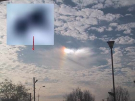 Bardzo często nasi czytelnicy dostrzegają coś dziwnego (smugę, dziwne ułożenie chmur itp) na niebie. Tak było w tym przypadku - czytelnik zobaczył, że chmury tworzą "trójką z małą smugą w środku, do którego prowadzi prosta linia". -----...